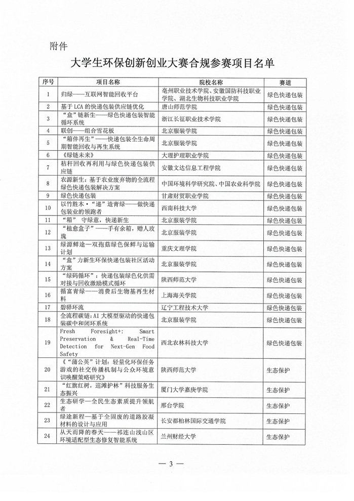 关于大学生环保创新创业大赛合规参赛项目名单的公示