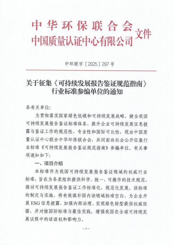 关于征集《可持续发展报告鉴证规范指南》行业标准参编单位的通知