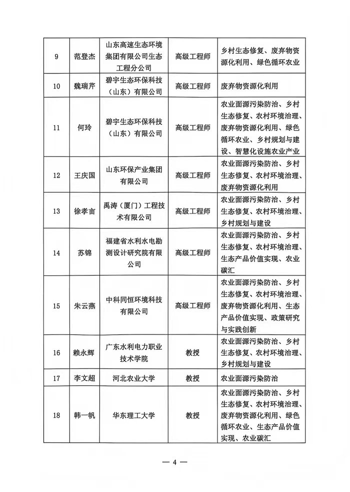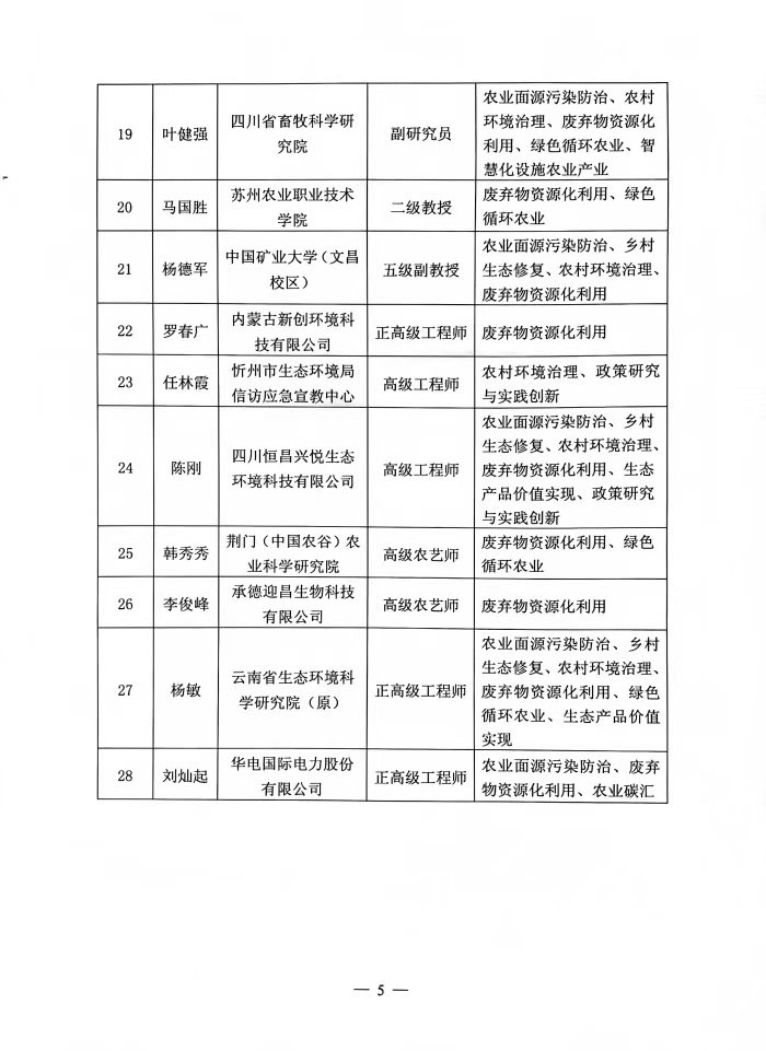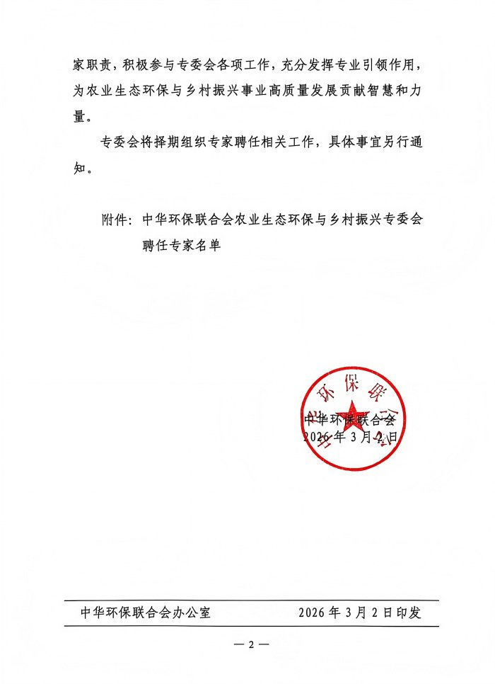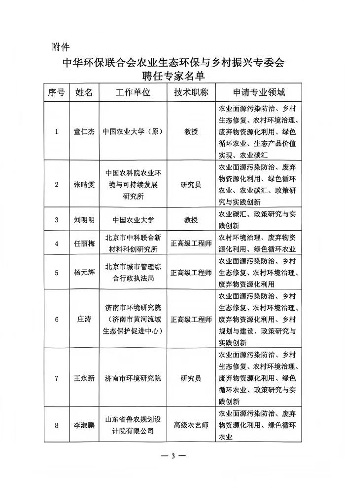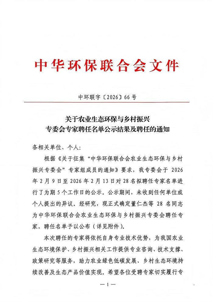 关于农业生态环保与乡村振兴专委会专家聘任名单公示结果及聘任的通知