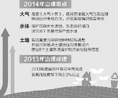 大气、水体、土壤污染治理,是国务院确定的本届政府环境保护三项重点工作。今年环保工作也将聚焦于此。