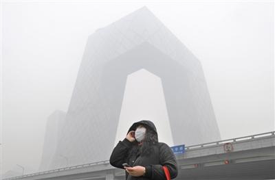 2013年1月29日,东三环光华桥下,央视大楼在大雾中隐隐约约。今年,北京将调整部分大额专项资金,拿出12.5亿元用于备受关注的大气污染治理。 记者 陈杰 摄