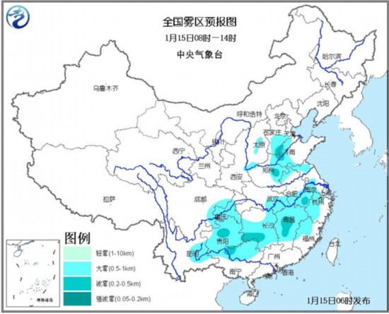 中央气象台06时继续发布大雾黄色预警:预计,今天早晨到上午,四川盆地东部、重庆中南部、贵州、云南东部、广西北部、湖南中南部、江西、湖北东部、安徽南部和北部、江苏西南部和北部、浙江西部、福建西北部、河南东部、山东西部、河北中南部、山西中部和南部等地有大雾;其中,河北南部、山东西北部、河南东部、安徽南部、江西中南部、湖南南部、广西北部、贵州中部等地的部分地区有能见度不足500米的浓雾。