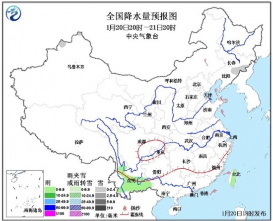 未来24小时,我国大部地区的降水较弱,东部和南部海区将有大风天气。具体预报为:新疆塔城及阿勒泰地区、吉林东南部、山东半岛东北部等地有小雪或雨夹雪天气;云南、台湾东部等地有小雨或阵雨天气;内蒙古东部、山东半岛等地仍将有4~6级偏北风。另外,黄海大部、东海南部、南海东北部及中东部将有7~8级、阵风9级的东北风。