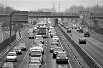 昨日下午,京开高速进京方向车流量大。记者 侯少卿 摄