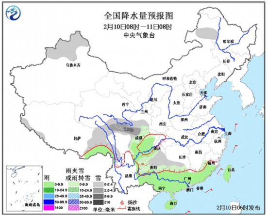 预计明天,南方的雨雪强度和范围基本不会发生太大变化;不过,12日起,青藏高原东部及其以东地区又将自西向东出现一次雨雪天气过程。除西南地区西部外,整个南方地区都将被降水天气笼罩,短暂放晴的江南也将再度遭遇雨雪。