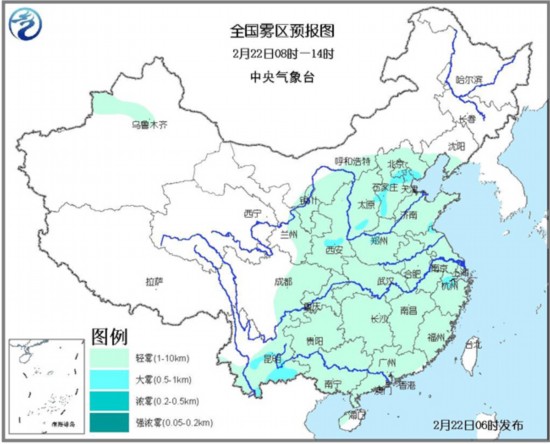 同时,今天早晨至上午,我国中东部大部地区有轻雾天气,其中,华北中南部、山东东南部沿海、江南东北部、云南南部等地的部分地区有大雾。