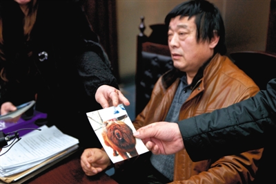 狗主人出示藏獒照片。昨日,藏獒美容致死索赔案二审开庭。新京报记者 周岗峰 摄
