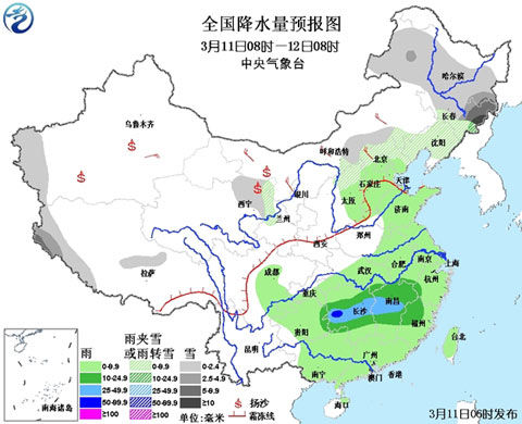 随着冷空气东移南下,未来三天,我国大部地区将先后出现4~8℃降温,局部地区降温幅度可达10℃以上,长江以北大部地区有4~6级偏北风;南疆盆地、内蒙古西部、甘肃中西部、宁夏北部等地的部分地区有扬沙或浮尘天气。今明天,新疆西南部、西藏西部、甘肃中部、内蒙古东北部、东北地区大部、华北北部等地有小到中雪或雨夹雪,其中,西藏西南部、吉林东北部等地的部分地区有大雪,局地暴雪。