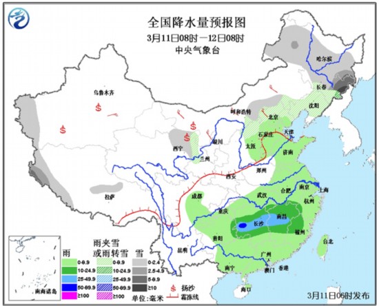 今天白天到夜间,中东部地区的雨雪天气将有明显加强。南方地区今起将迎来新一轮降雨天气过程;其中,湖南中部、江西中部的部分地区有大雨,局地暴雨。强降雪天气也会在未来24小时内现身于西藏西南部、吉林东北部等地,可以达到大雪量级,局地暴雪。中央气象台建议:强雨雪天气会造成道路湿滑、结冰,对交通运输产生不利影响,请朋友们及时关注最新天气预报;驾车出行时注意减速慢行,确保安全。