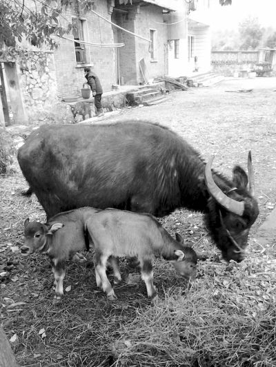 昨天下午,记者赶到该村时,双胞胎牛犊的主人毛华平,正在给牛的“一家三口”喂草料,但依偎在母牛边的这对牛犊,却对草料毫无兴趣。