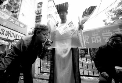 昨天,“南阳诸葛亮”在北京街头赠饮南水北调源头水,由于纸杯很快发完,一位没有拿到纸杯的大妈直接用嘴接水喝。
