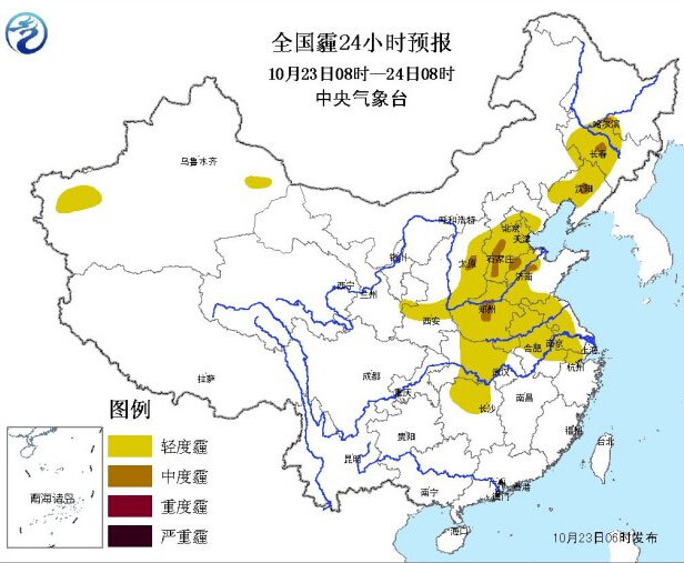 预计,23至25日,京津冀地区、东北平原中南部、黄淮北部等地的部分地区将有中-重度霾;另外,上述地区和苏皖大部,夜间到早晨部分地区有大雾,局地浓雾。