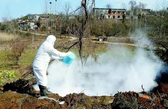 “墓主因患肝炎等传染性疾病致死的,墓穴清理后先焚烧,焚烧干净后再回填,每填10厘米到15厘米土,就撒一层漂白粉消毒,少的撒5层,多的撒10层。”丹江口市疾控中心副主任吴建军介绍。