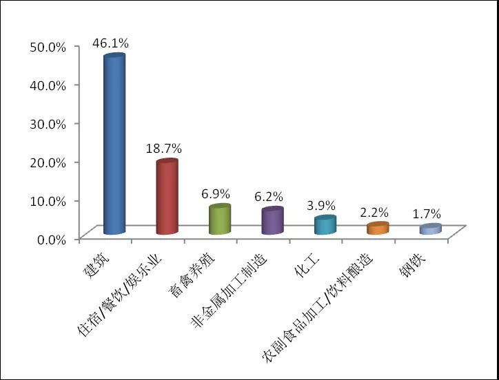 从行业类型来看,5月公众反映最集中的行业为建筑业,占46.1%,其次为住宿餐饮娱乐业和畜禽养殖业,分别占18.7%和6.9%。其中,建筑业举报占比环比上升1.7个百分点,住宿餐饮娱乐业、畜禽养殖业举报占比环比分别上升2.2个百分点和1.4个百分点。