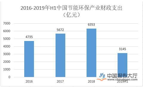 除了政策支持外,国家还加大了我国环保节能产业的财政支出力度。2014-2018年,我国节能环保产业财政支出呈上升趋势,2018年,我国环保节能支持6353亿元,同比增长13%;2019年上半年,在全国一般公共预算支出12.35万亿元中,节能环保支出3145亿元,同比增长19.7%,增速位居所有版块第二,仅低于交通运输版块。