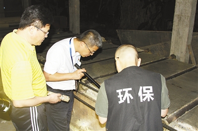 图为肇庆生态环境局执法组夜间突击检查。 肇庆生态环境局供图