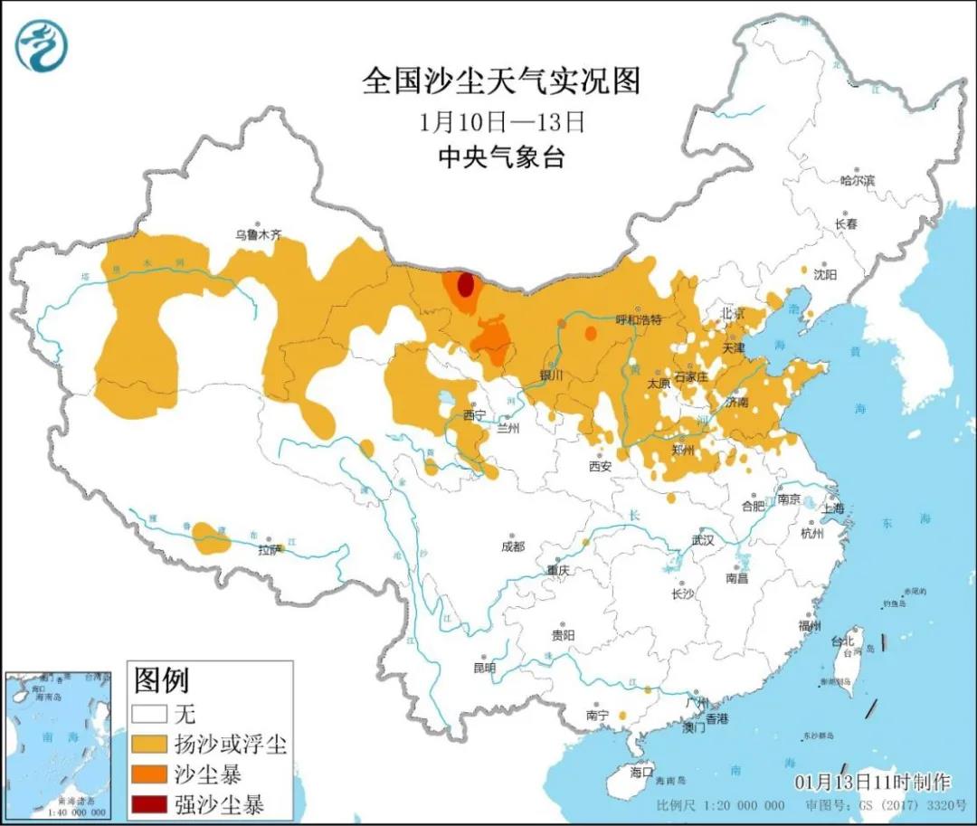 1月10日至13日全国沙尘天气实况(来源:中央气象台)