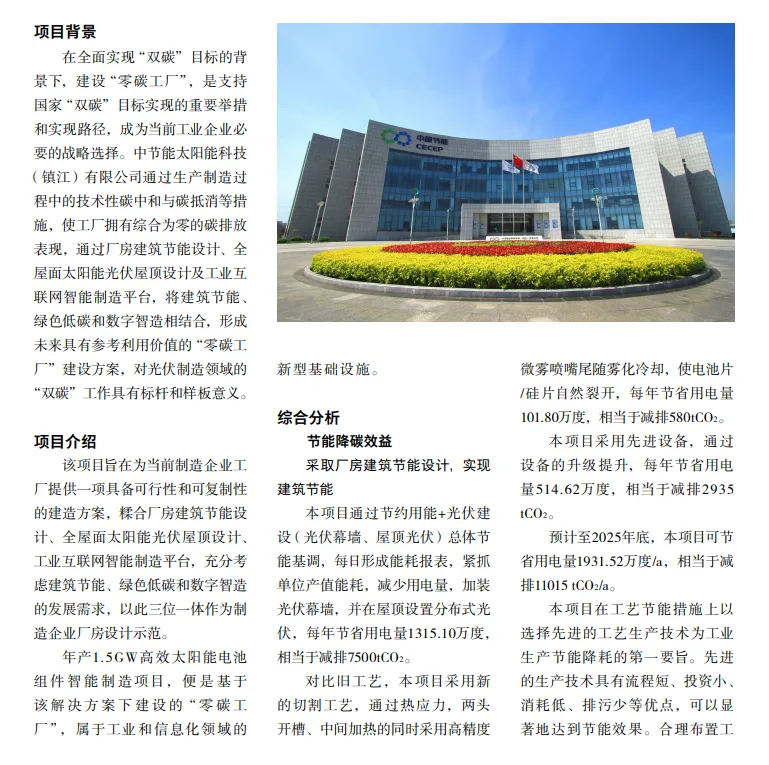 中节能太阳能科技(镇江)有限公司“零碳工厂”建设研究成果