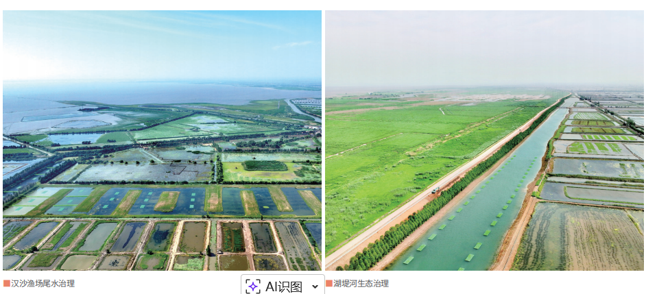 水美田丰——洪湖水域水产养殖区生态化改造在洪湖水域水产养殖区,渔场养殖基地规模大,且以往尾水排放直入洪湖,长此以往该区域渔场底泥重金属含量严重超标、淤泥厚度高、水质污染严重、生物多样性受损等问题突出。中交一航局启动江汉平原水产养殖生态化改造与污染治理(洪湖片区)试点项目。项目团队采用行业领先的“四池三坝”标准化处理工艺,规模化种植净水植物3.5万m2 ,打造“植物吸收—动物滤食—微生物分解”的立体净化网络。大幅提升水体自净能力,化尾水为活水。