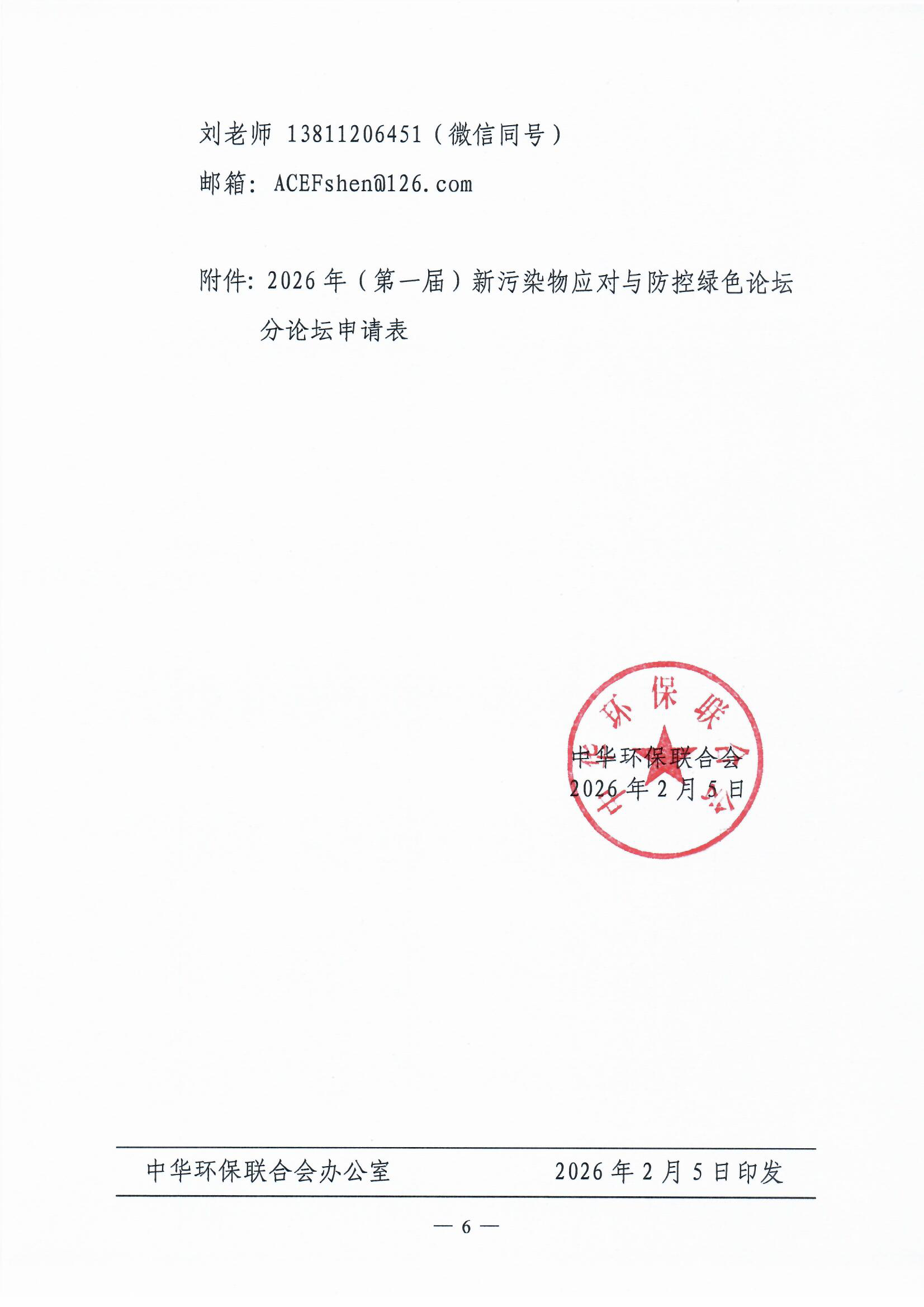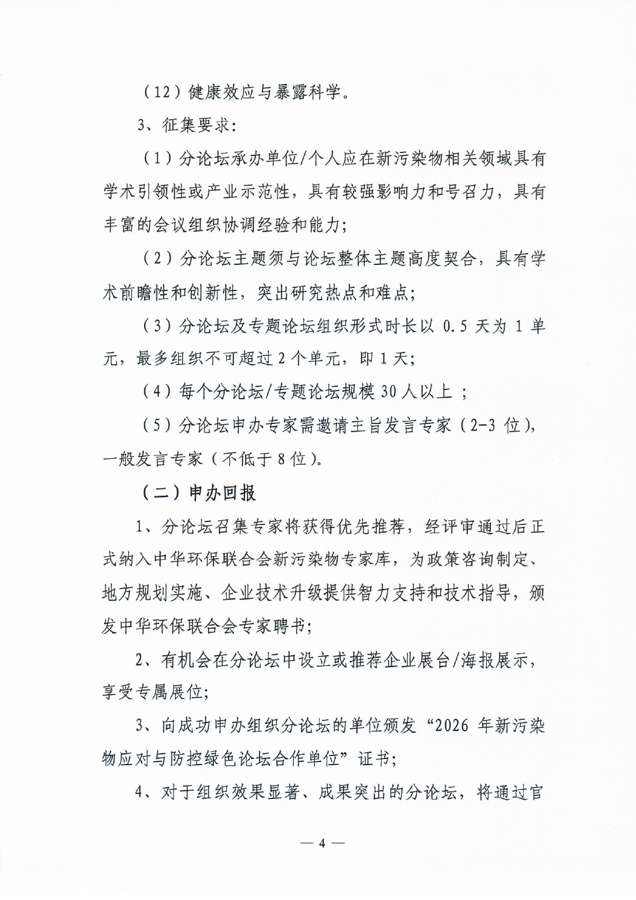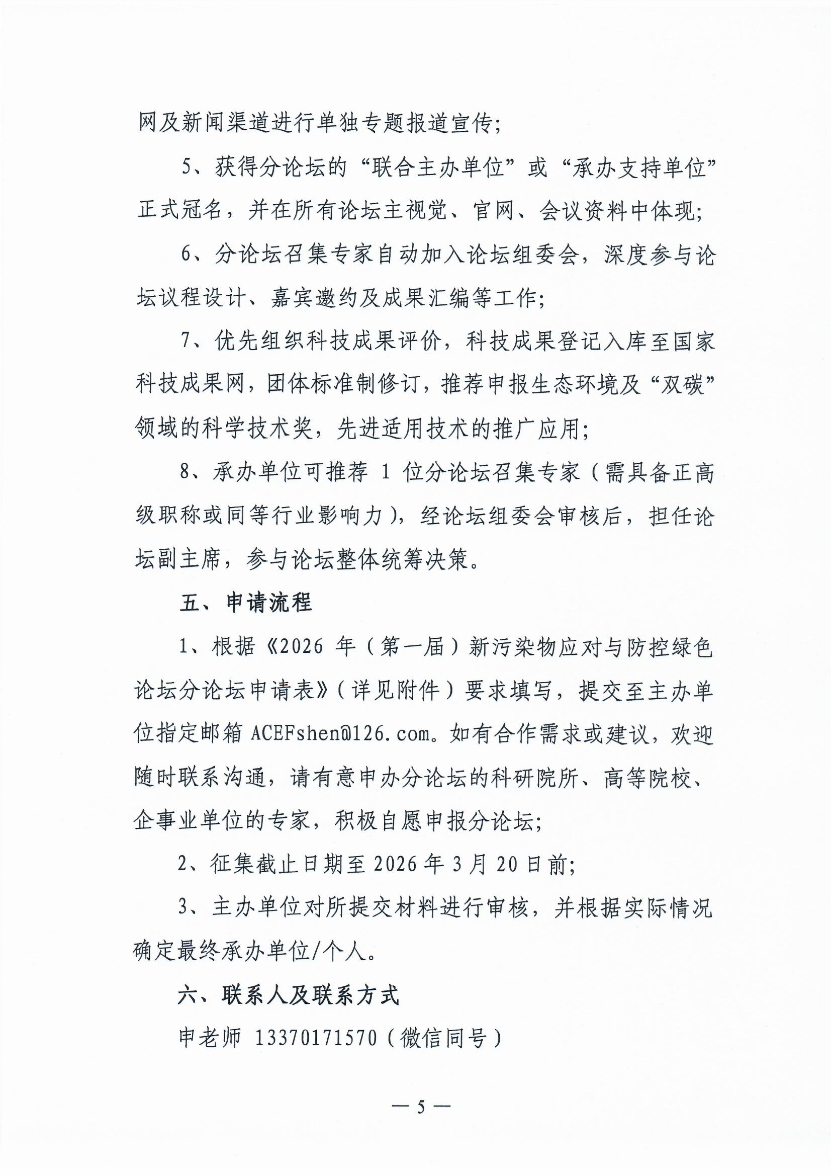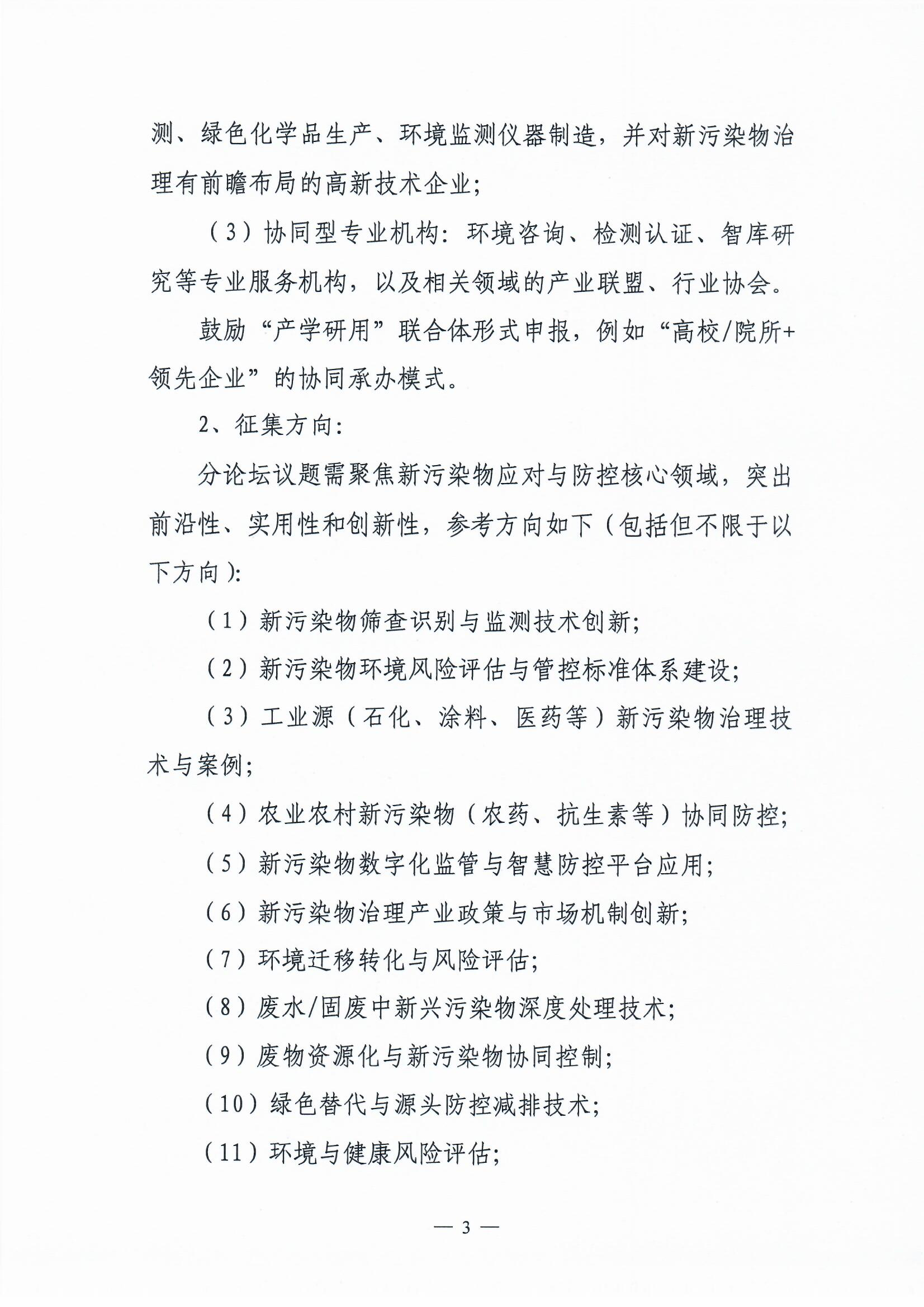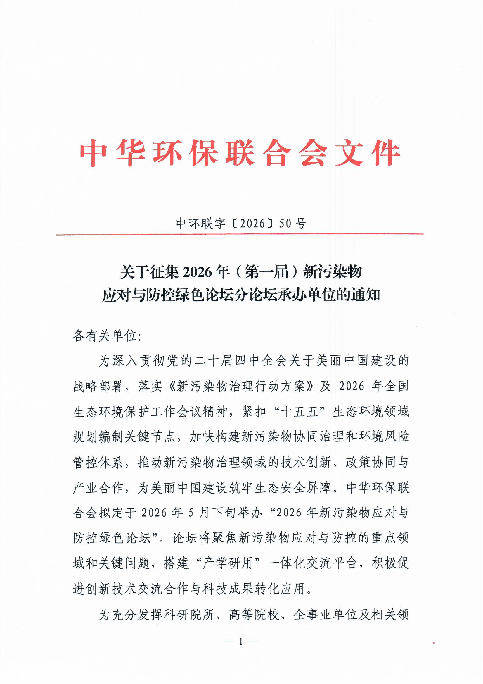 关于征集2026年(第一届)新污染物应对与防控绿色论坛分论坛承办单位的通知