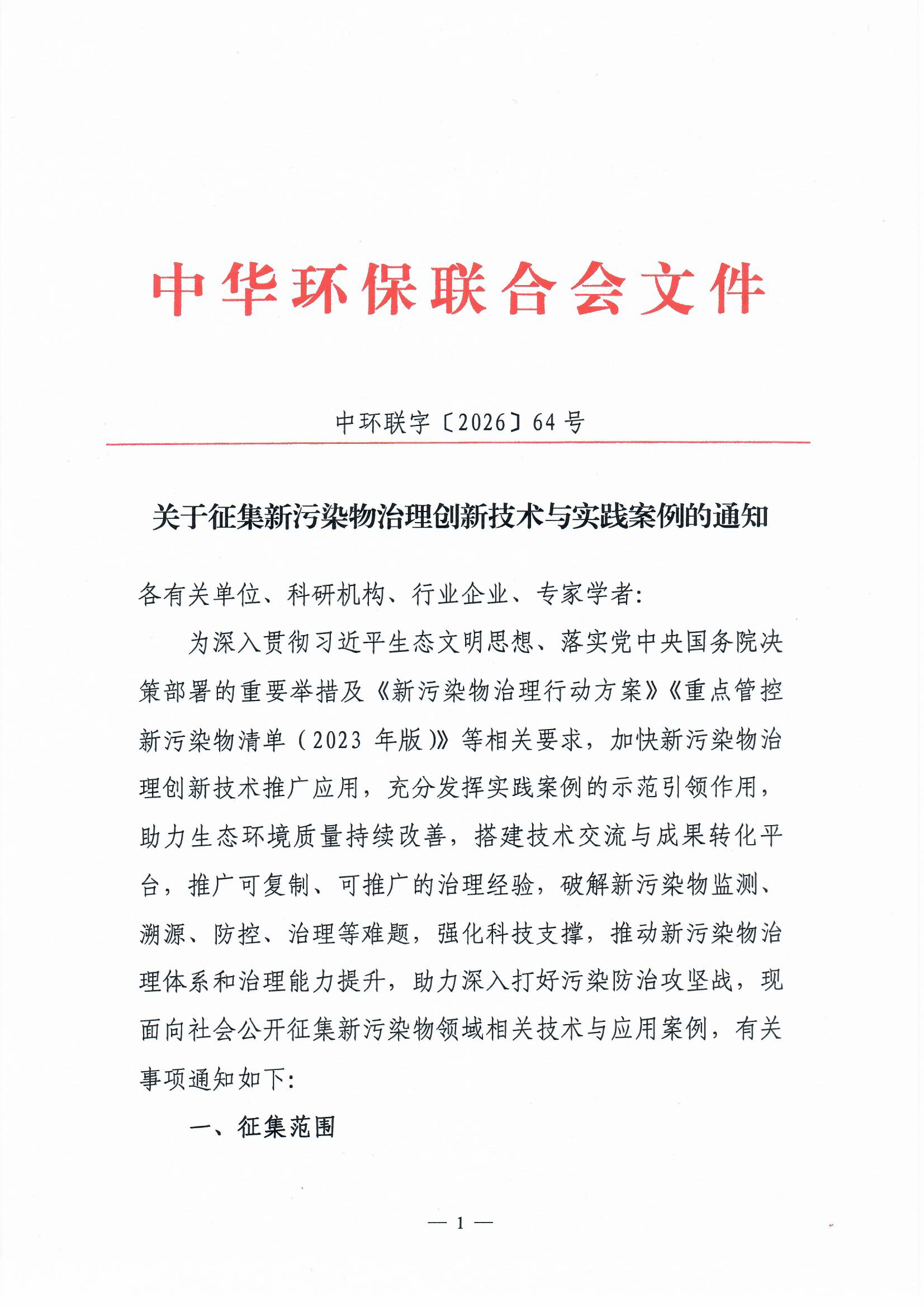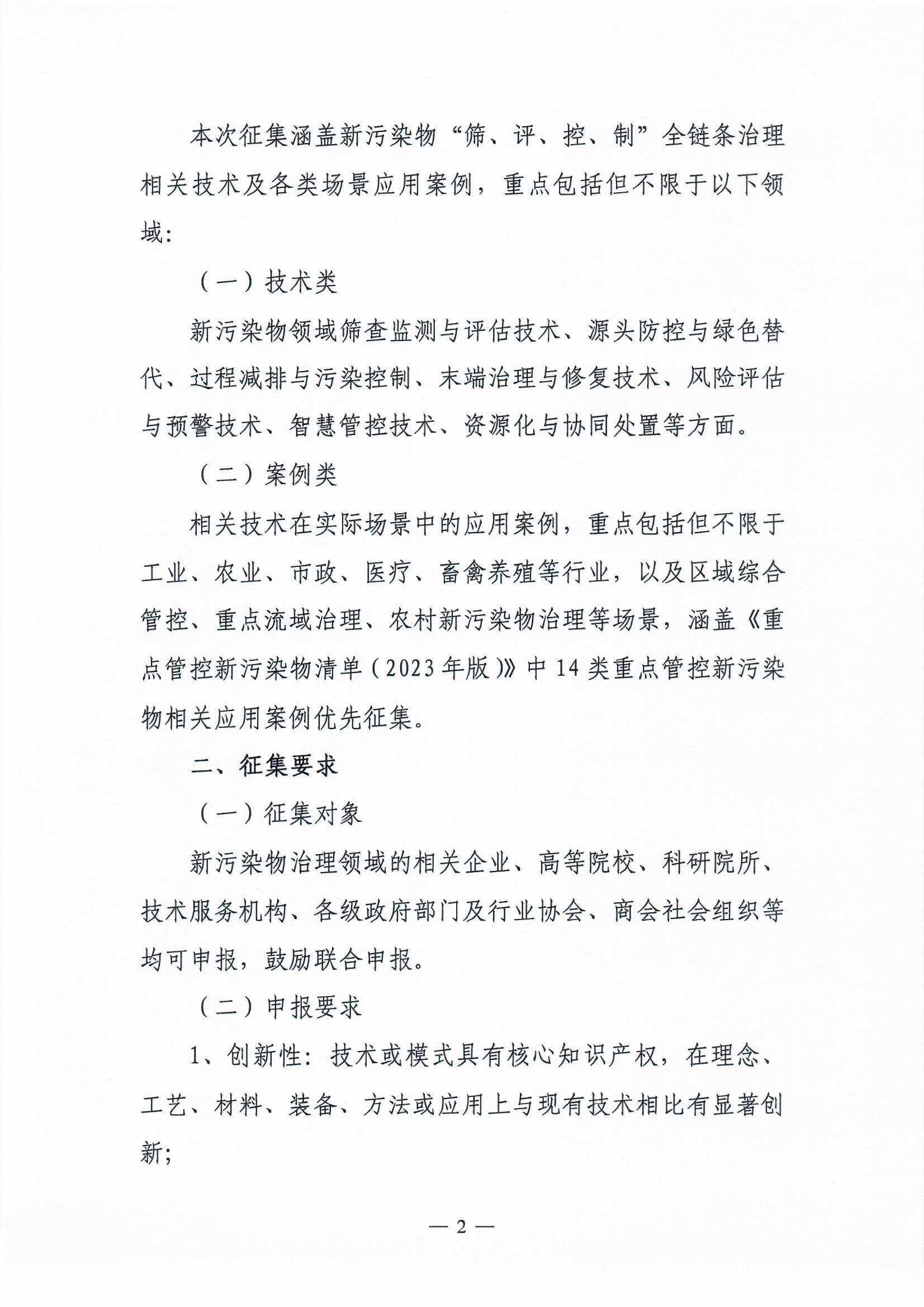 关于征集新污染物治理创新技术与实践案例的通知