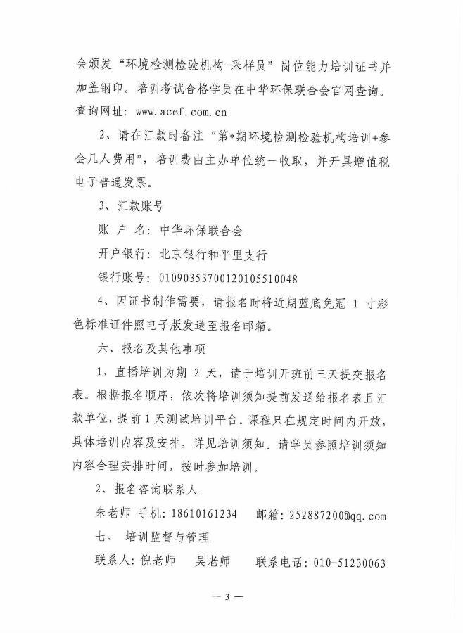 关于举办第17期“环境检测检验机构(采样员)专业岗位能力”网络培训班的通知