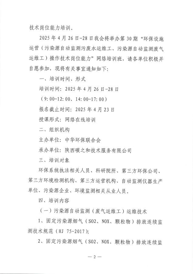 关于举办第30期“环保设施运营(污染源自动监测污废水运维工、污染源自动监测废气运维工)操作技术岗位能力”网络培训班的通知