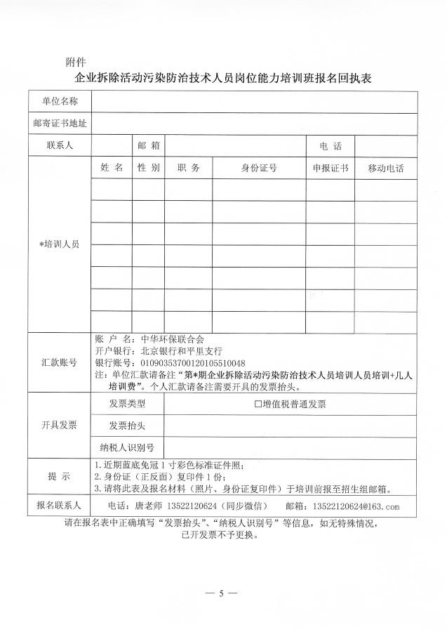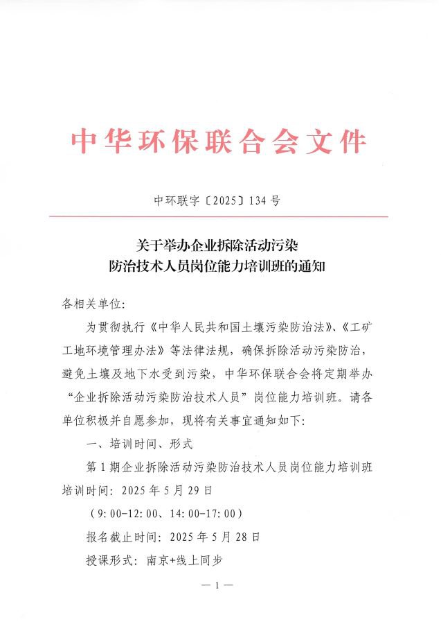 关于举办企业拆除活动污染防治技术人员岗位能力培训班的通知