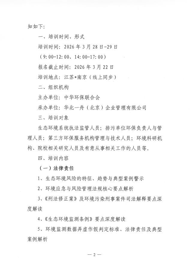 关于举办第1期“企业/园区环境监管执法与合规管理”培训班的通知