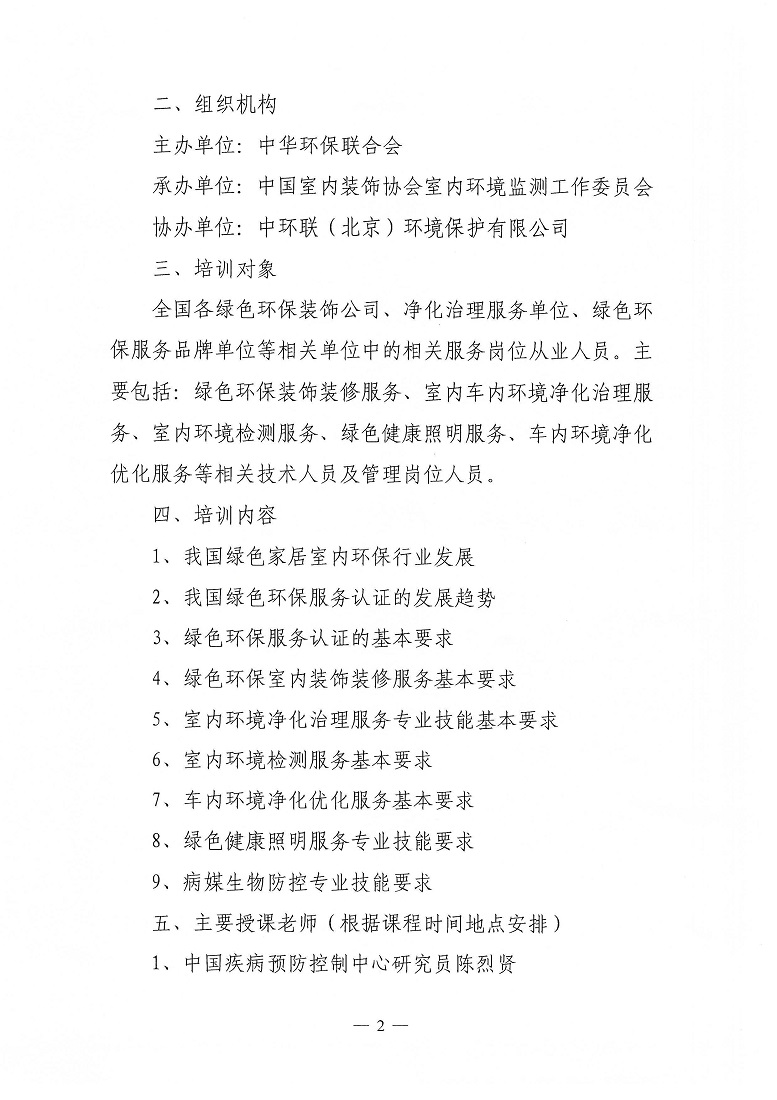 关于举办第2期绿色家居室内环保相关