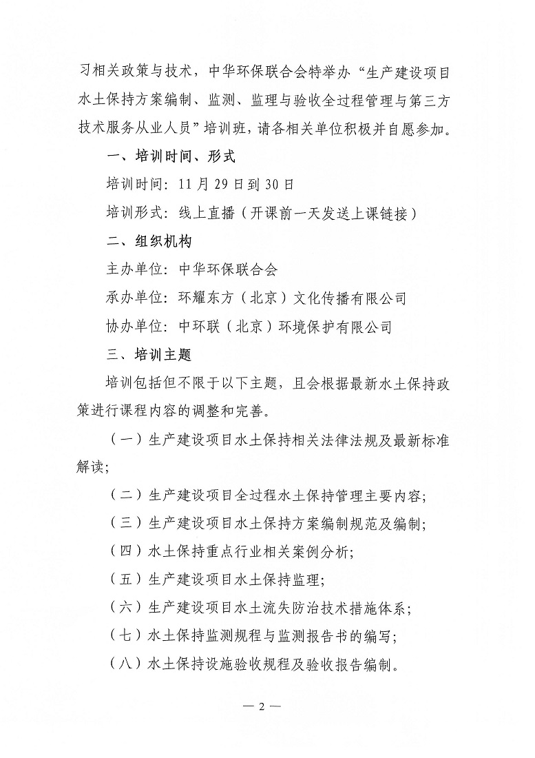 关于举办第11期“生产建设项目水土保持方案编制、监测、监理与验收全过程管理与第三方技术服务从业人员”培训班的通知