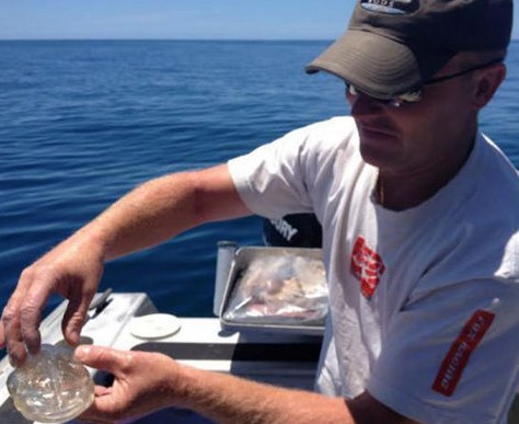 据报道,新西兰渔民斯图亚特·弗雷泽(Stewart Fraser)带着2个儿子在北岛北部凯卡利卡利半岛(Karikari Peninsula)附近捕鱼时,发现水面上漂着一只“透明的虾”。弗雷泽说这只特别的“虾”“摸起来好像有鳞,很坚韧,像果冻一样。除了体内一颗橘色小圆球以外,看起来完全透明。”