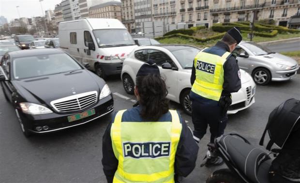 巴黎交警正对过往车辆检查,3月17日这天尾号双数的车辆限行。