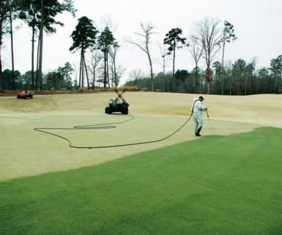 草坪着色实际上是美国50年代开始兴起的一项景观改造方法。在早期主要是为了方便电影拍摄场景的绿化。