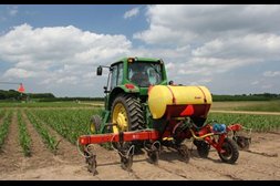 在密歇根州“长期生态研究农业生产基地”,一辆拖拉机正在给玉米苗进行精准施肥。