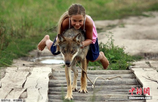 另类俄罗斯家庭将狼作为宠物 10岁女孩骑狼狂奔