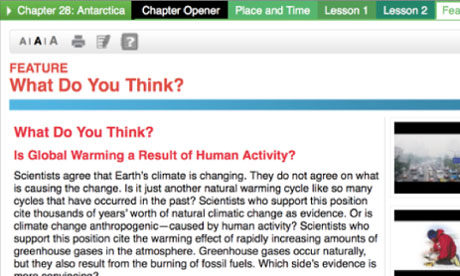 在提交的六年级课本修改稿中称,科学家对全球变暖的诱因存在争议。教材中写道:“科学家同意地球气候正在发生变化,但对变化原因存在分歧。”