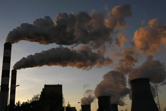 图释:滚滚浓烟从欧盟最大煤炭发电站波兰贝乌哈图夫电站(Belchatow Power Station)的烟囱中冒出。