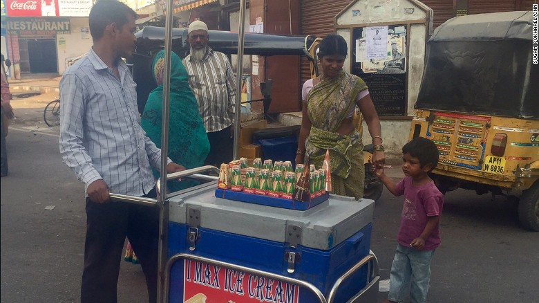 冷饮商贩表示:今年冰激凌的销量是去年的两倍。晚上和清早顾客最多,下午基本没人,因为高温让人们不得不呆在室内。(图片来源:Sugam Pokharel/CNN)